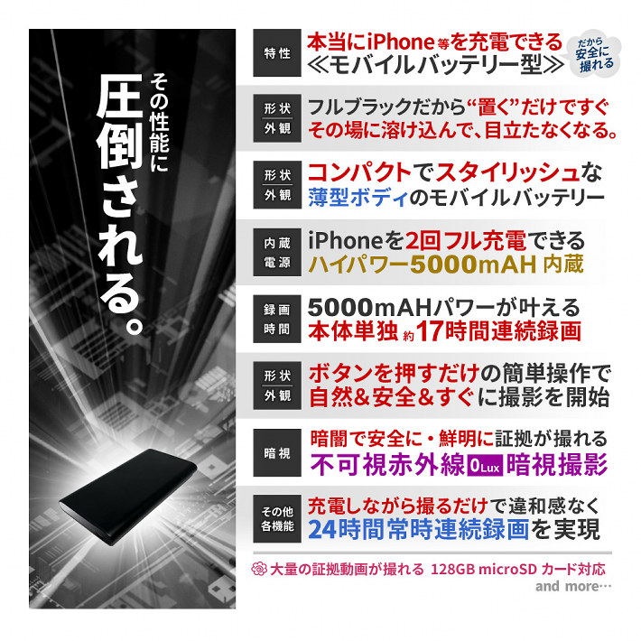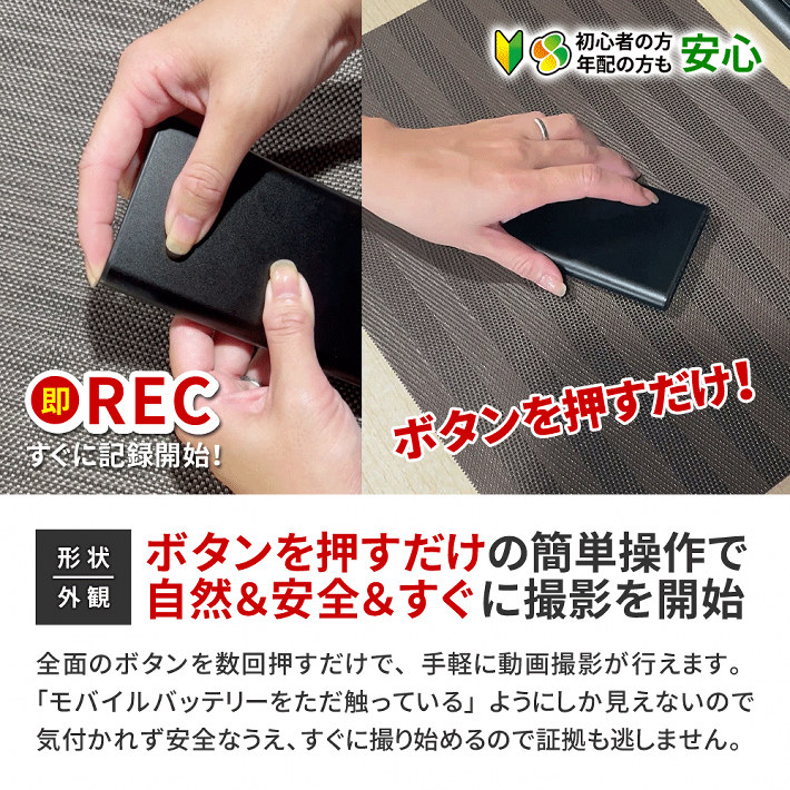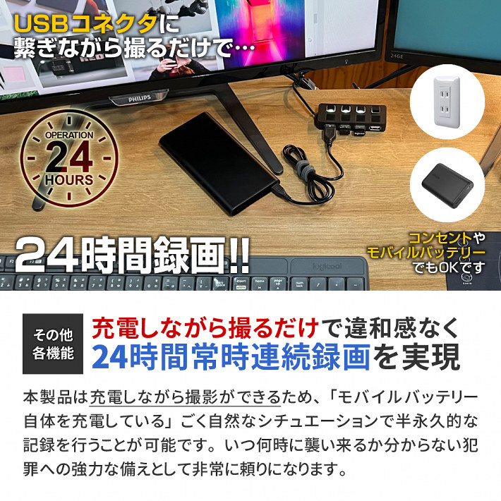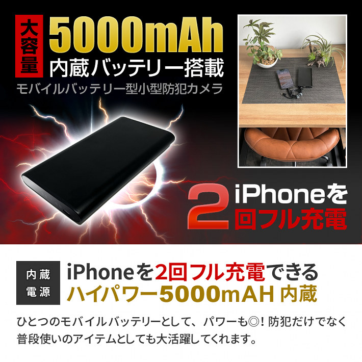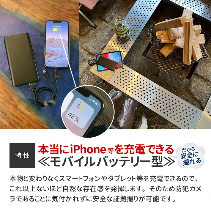 モバイルバッテリー型カメラ「単体17時間連続録画/赤外線暗視/繰返し録画」